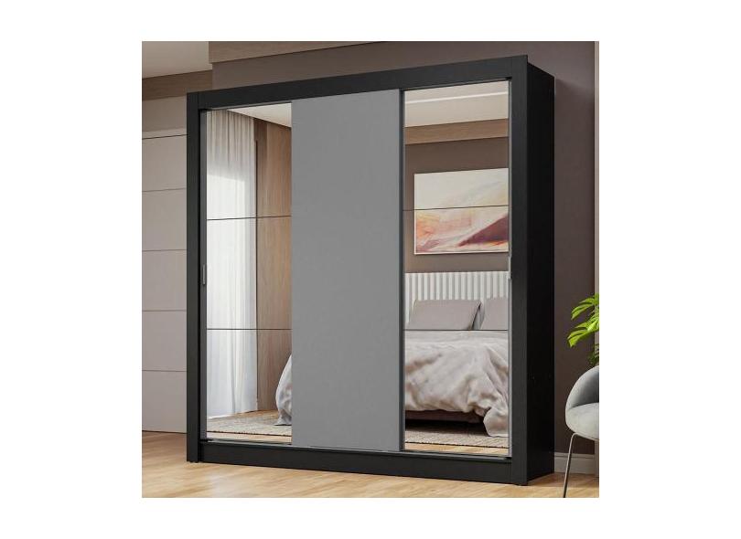 Guarda-Roupa Casal 3 Portas de Correr com Espelhos Preto/Cinza Nobre M
