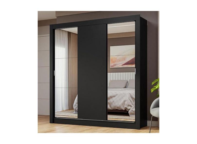 Guarda-roupa Casal 3 Portas de Correr com Espelhos Preto Nobre Madesa