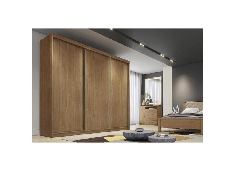 Guarda Roupa Casal 3 Portas de Correr e 4 Gavetas Arezzo/Medelim Cumaru - Novo Horizonte