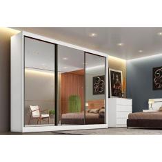 Guarda Roupa Casal 3 Portas De Correr E 8 Gavetas C/ 3 Espelhos Sollo
