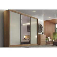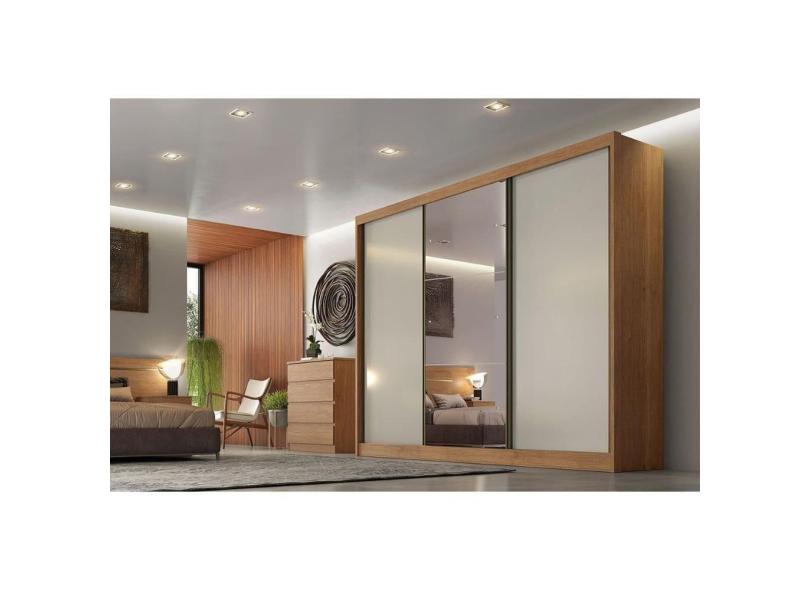 Guarda Roupa Casal 3 Portas De Correr E 8 Gavetas C- Espelho Natus-duna Cumaru-fendi