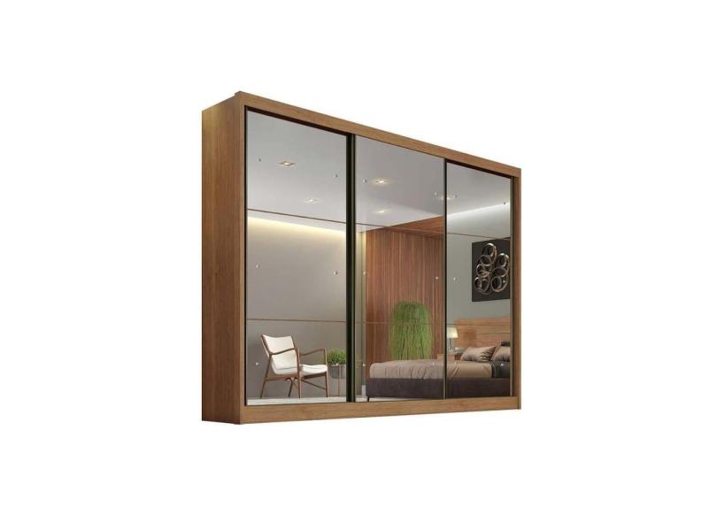 Guarda Roupa Casal 3 Portas de Correr e 8 Gavetas c/ Espelho Passion/Atlanta Cumaru - Novo Horizonte
