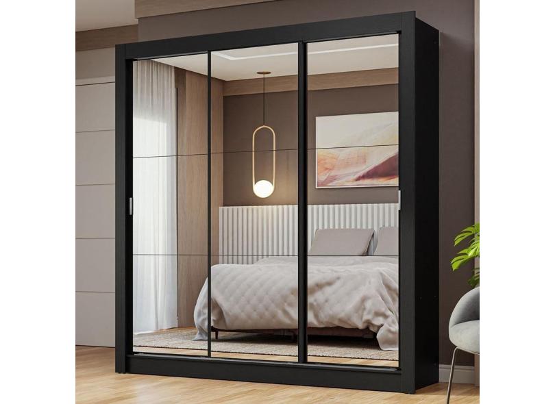 Guarda-roupa Casal 3 Portas De Correr Espelho Preto