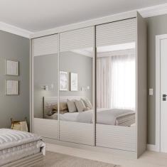 Guarda-Roupa Casal 3 Portas De Correr Ripadas Com Espelho Samambaia Ca