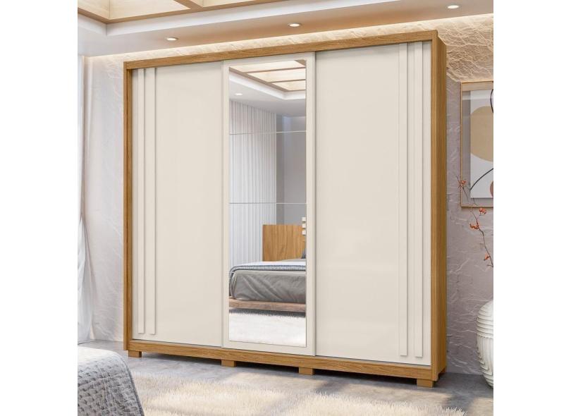 Guarda Roupa Casal 3 Portas Deslizantes Com Espelho 3 Gavetas Freijo / Off White San Marino - Moval