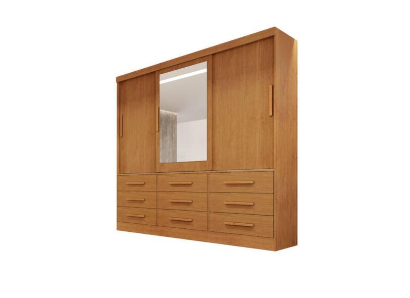 Guarda-roupa casal 3 portas espelho 9 gavetas 2,11m - Turim-Nature - Bianchi Móveis
