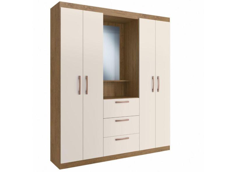 Guarda Roupa Casal 4 Portas 3 Gavetas Capelinha 156cm Panamá Off White/Nogueira - Megasul
