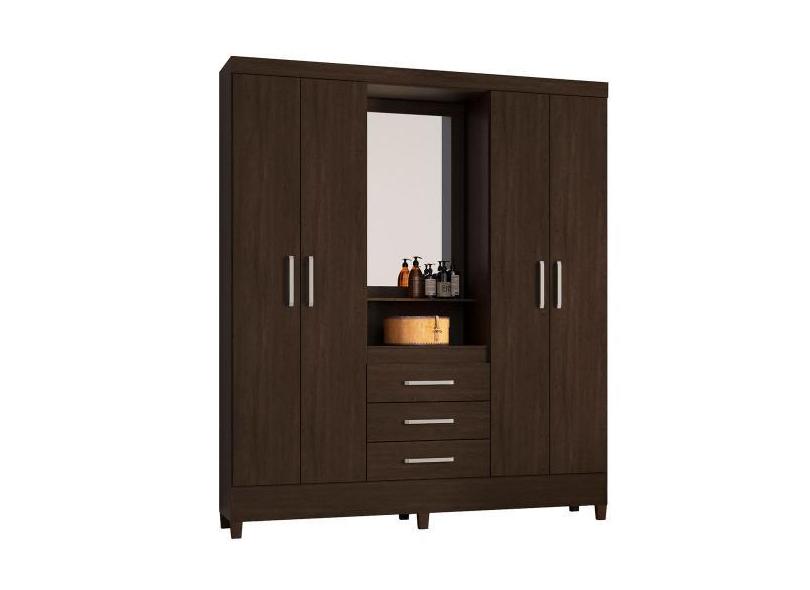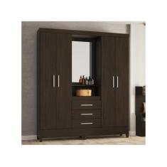 Guarda Roupa Casal 4 Portas Capelinha Pérsia C/ Espelho 43220 Ébano To