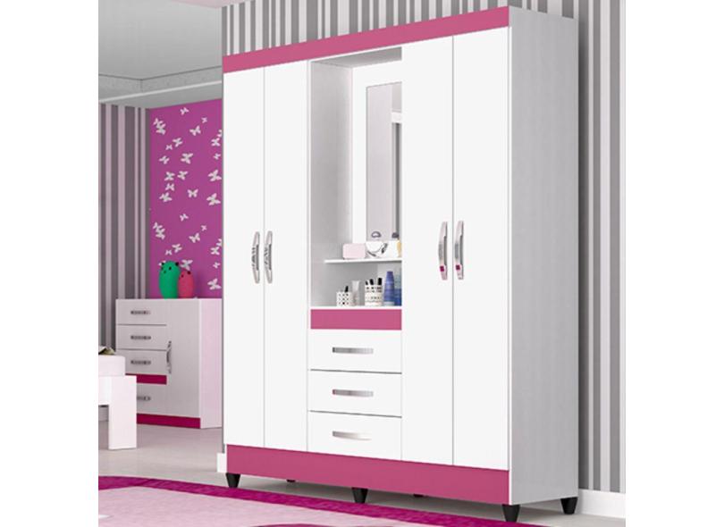 O menor preço encontrado no Brasil para Guarda-Roupa Casal 4 Portas com Espelho Capri Moval Branco/Rosa atualmente é R$ 713,16.