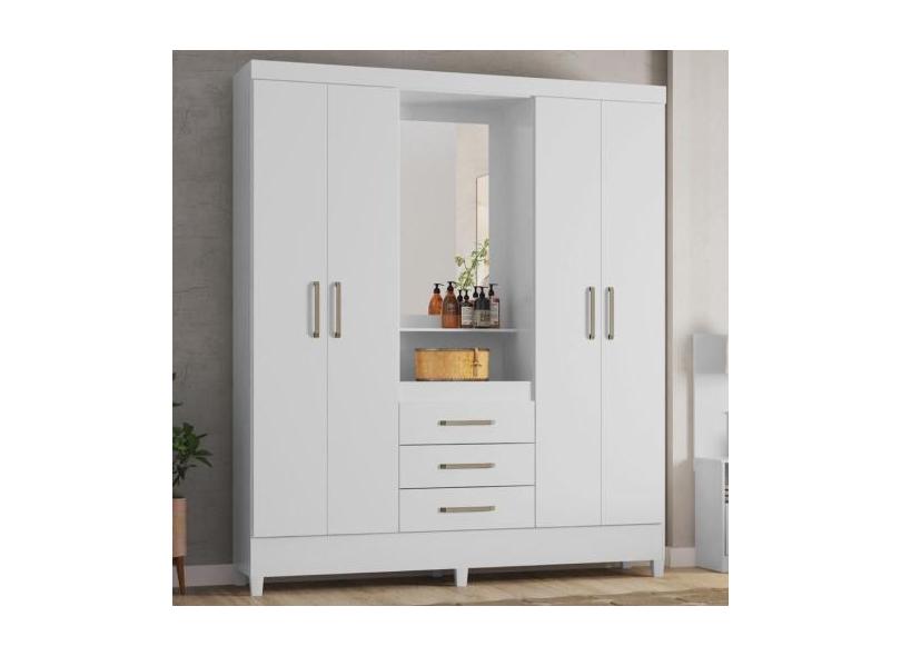 Guarda Roupa Casal 4 Portas Com Espelho e 3 Gavetas Colombo - Branco/R
