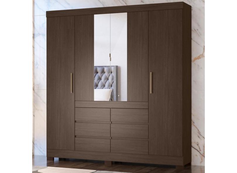 Guarda Roupa Casal 4 Portas Com Espelho e 6 Gavetas Cádis