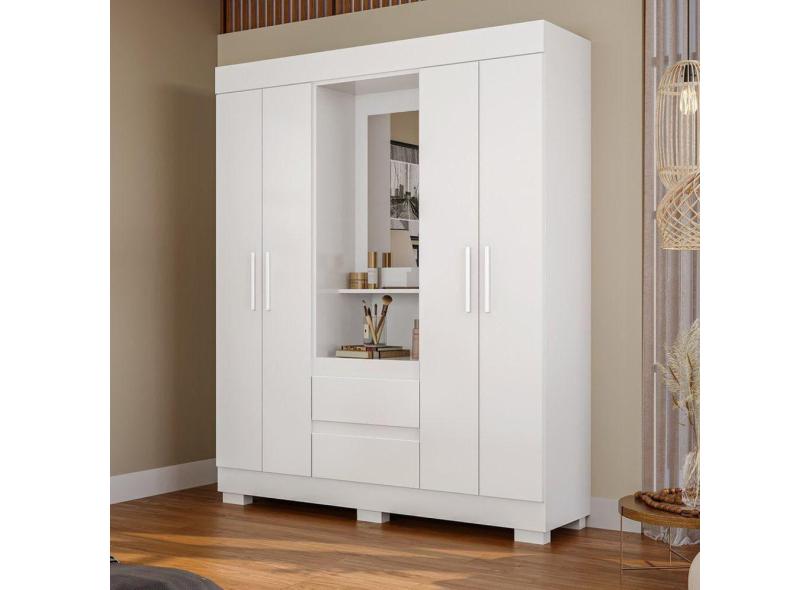 Guarda Roupa Casal 4 Portas e 2 Gavetas Capelinha com Espelho Alyssa Espresso Móveis Branco