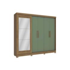 Guarda Roupa Casal 5 Portas e 4 Gavetas c/ Espelho e Pés Flex CB01N564 Nogueira/Verde Oliva - Kappesberg