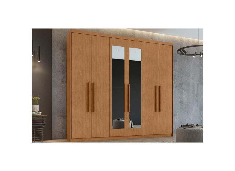 Guarda Roupa Casal 6 Portas (2 c/ Espelho) e 5 Gavetas Áries Amêndoa - Lopas