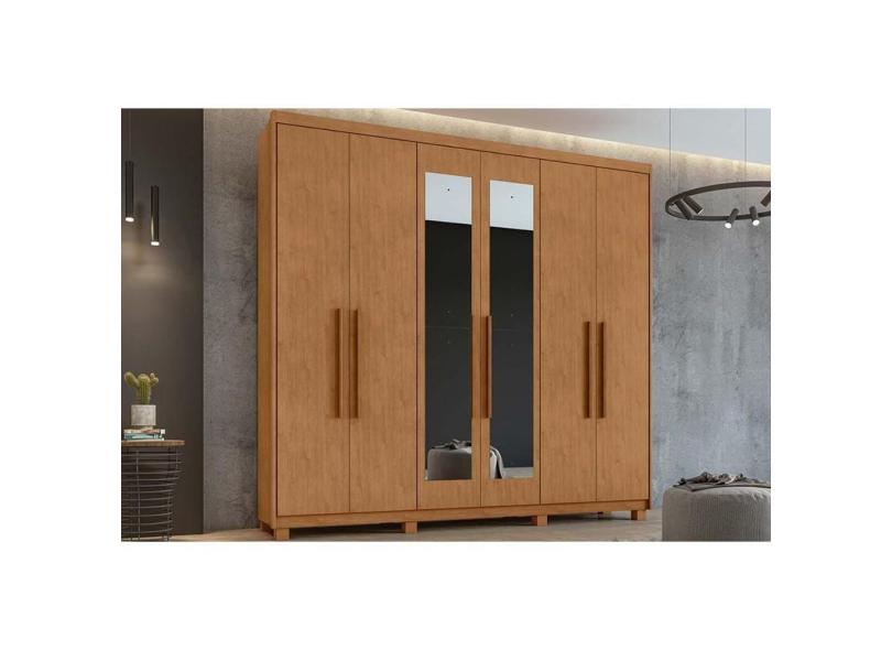 Guarda Roupa Casal 6 Portas (2 C- Espelho) E 5 Gavetas C- Pés áries Amêndoa