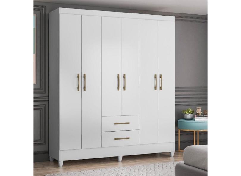 Guarda Roupa Casal 6 Portas 2 Gavetas 1,53m Branco Panamá Moval