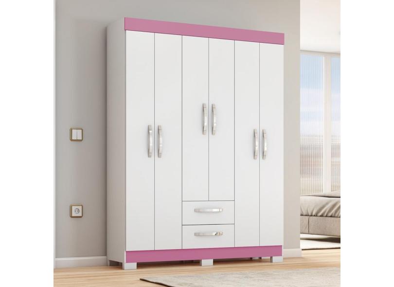 Guarda-Roupa Casal 6 Portas 2 Gavetas Belize Notável Branco/Rosa