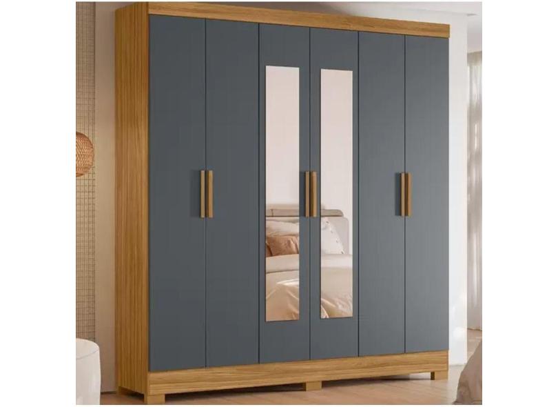 Guarda Roupa Casal 6 Portas 2 Gavetas com Espelho Freijo / Cinza / Ripado Valença - Moval