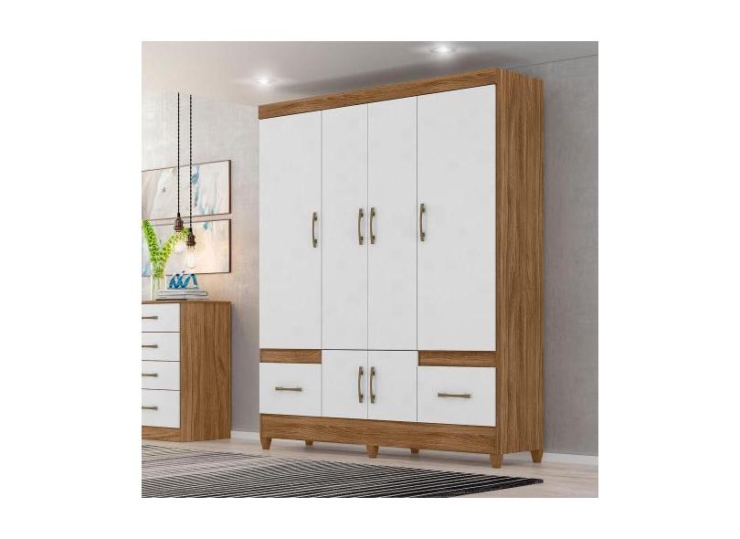 Guarda Roupa Casal 6 Portas 2 Gavetas Naturale Branco Ms912 Moval