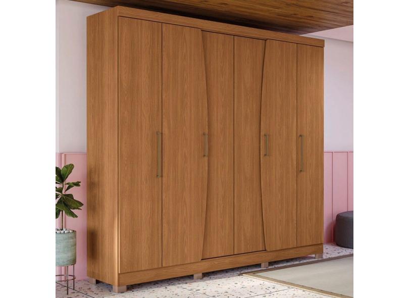 Guarda-Roupa Casal 6 Portas 3 Gavetas 6 Prateleiras Canela - Kappesberg