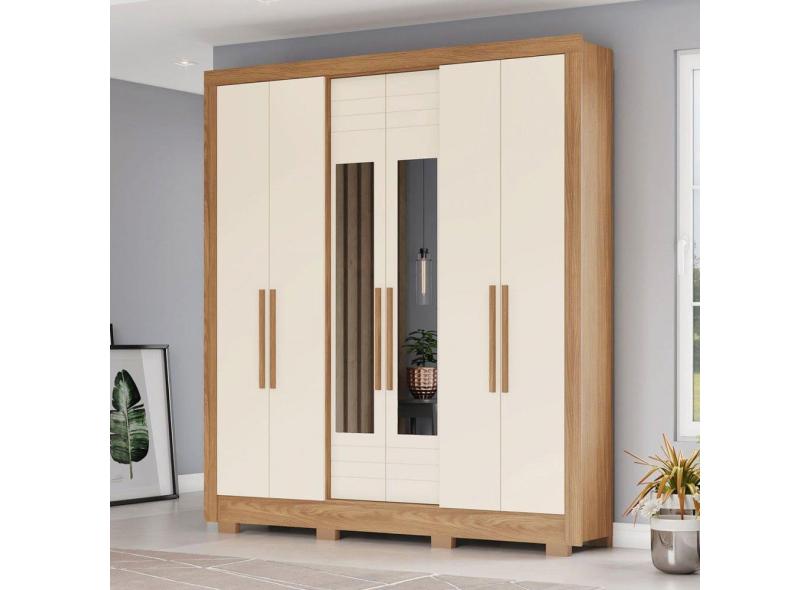 Guarda Roupa Casal 6 Portas 3 Gavetas com Espelho B366 Nature/Off White - Briz