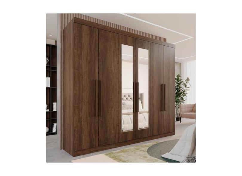 Guarda-roupa Casal 6 Portas 3 Gavetas com Espelho Roma Espresso Móveis Imbuia