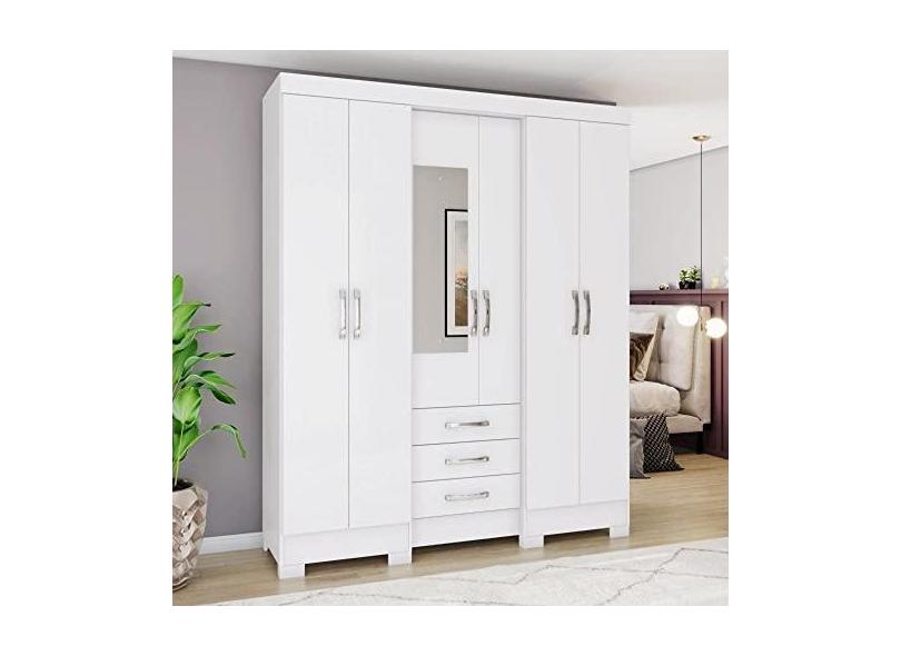 O menor preço encontrado no Brasil para Guarda Roupa Casal 6 Portas 3 Gavetas com Espelho Santorini Henn Branco atualmente é R$ 762,00.