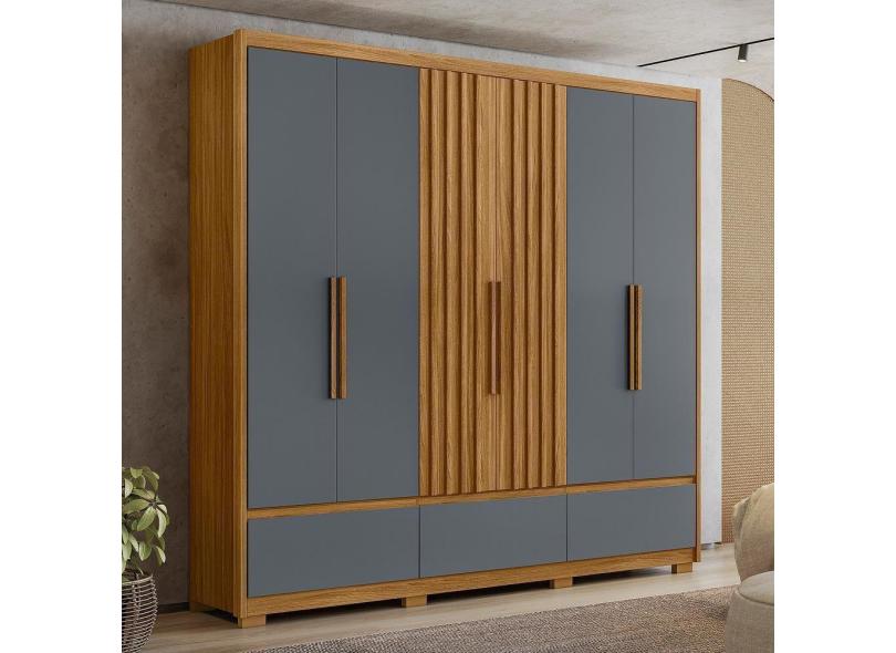 Guarda Roupa Casal 6 Portas 3 Gavetas Freijó / Cinza Amazonas - Moval