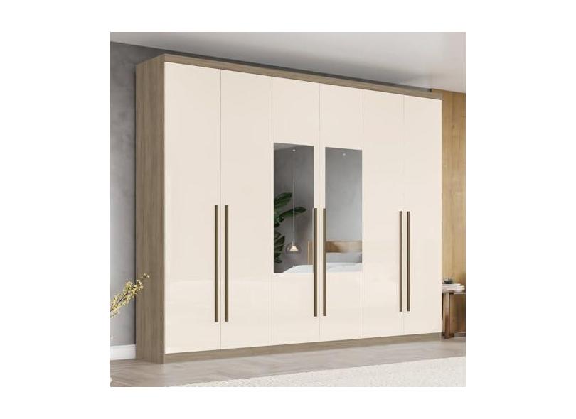 O menor preço encontrado no Brasil para Guarda-roupa Casal 6 Portas 3 Gavetas Internas com Espelho Jade Rústico/off White atualmente é R$ 1.521,38.