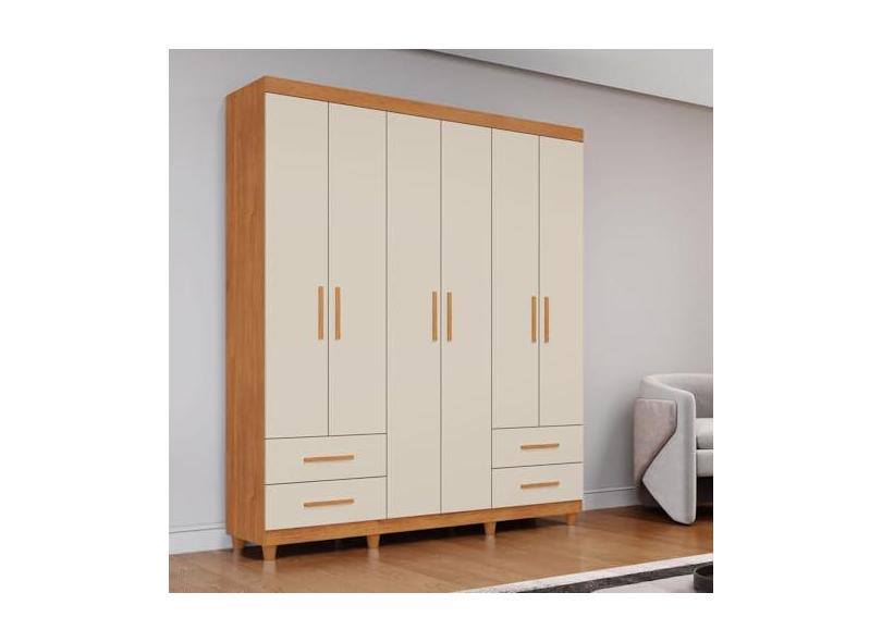 Guarda Roupa Casal 6 Portas 4 Gavetas Califórnia Cinamomo/Off White