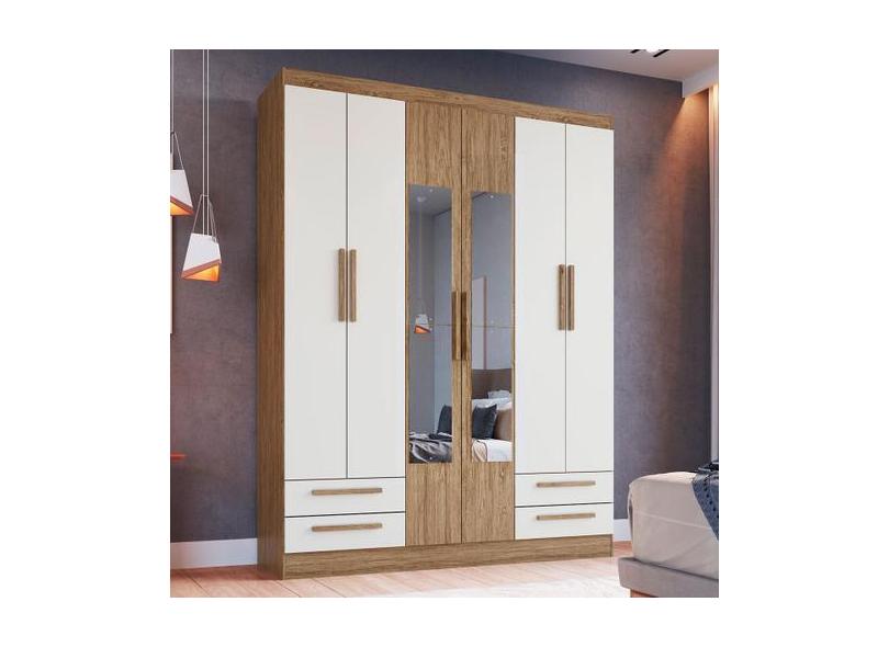 Guarda-Roupa Casal 6 Portas 4 Gavetas com Espelho Wood/Branco Rp3640 -
