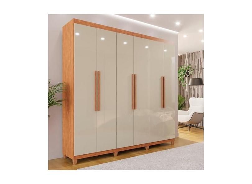 Guarda-roupa Casal 6 Portas 4 Gavetas com Pés Atlanta Cinamomo/Off-White