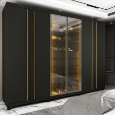 Guarda Roupa Casal 6 Portas 4 Gavetas com Vidro Reflecta e Led Absolut Gelius
