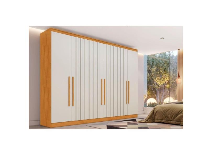 Guarda Roupa Casal 6 Portas (4 Ripadas) e 6 Gavetas Oxford Peroba/Off White - Europa