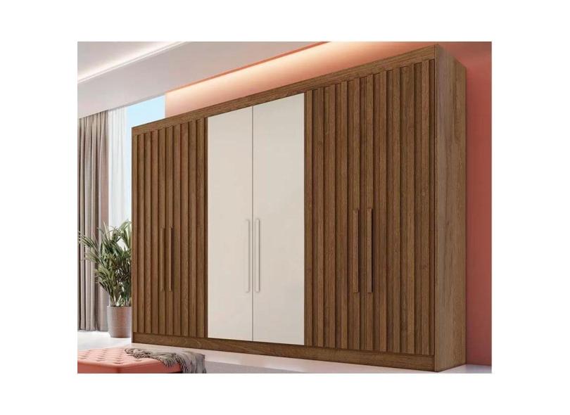 Guarda Roupa Casal 6 Portas (4 Ripadas) e 6 Gavetas Ripadas Potente Brauna-Ipe/Off White - Europa