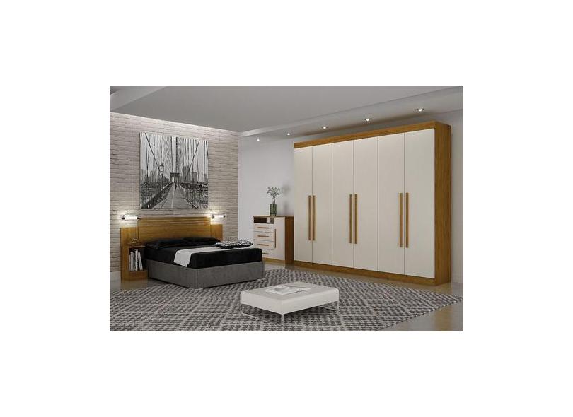 Guarda Roupa Casal 6 Portas 6 Gavetas - Diamante-Frejó/Off White - Lei