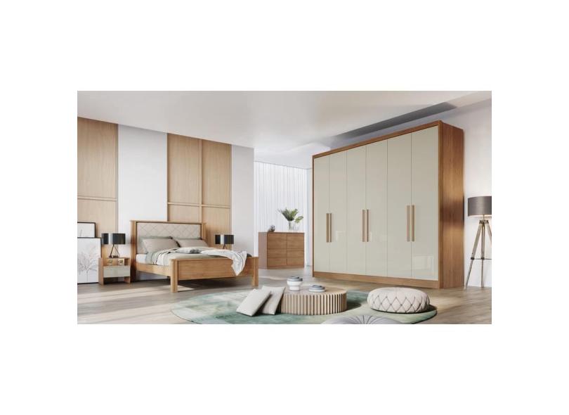Guarda Roupa Casal 6 Portas 6 Gavetas - New Vértice-Cumaru/Fendi - Móveis Novo Horizonte