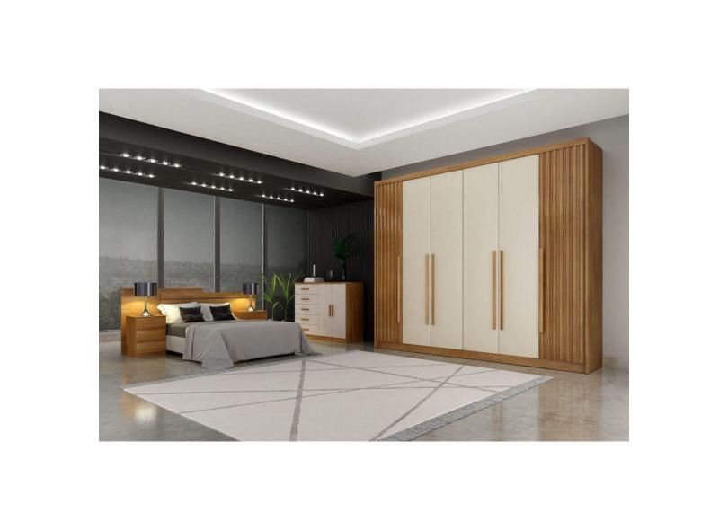 Guarda Roupa Casal 6 Portas 8 Gavetas - Coimbra Ripado-Cumaru/Fendi - Móveis Novo Horizonte