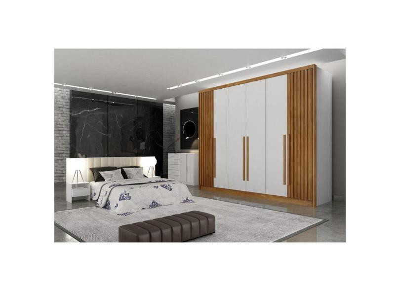 Guarda Roupa Casal 6 Portas 8 Gavetas - Himalaia Ripado-Branco - Móveis Novo Horizonte