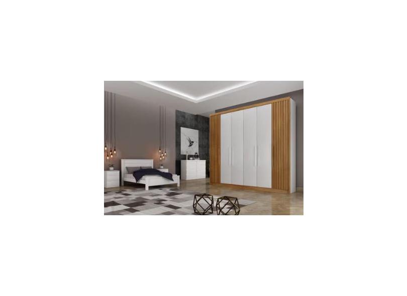 Guarda Roupa Casal 6 Portas 8 Gavetas Santoro Ripado Móveis Novo Horizonte - Branco/Cumaru Ripado