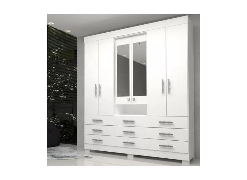 Guarda Roupa Casal 6 Portas 9 Gavetas Capelinha Com Espelho 100% Mdf D
