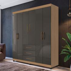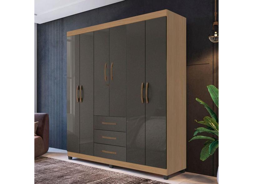 Guarda Roupa Casal 6 Portas Antônio Nature Grafite Perolizado