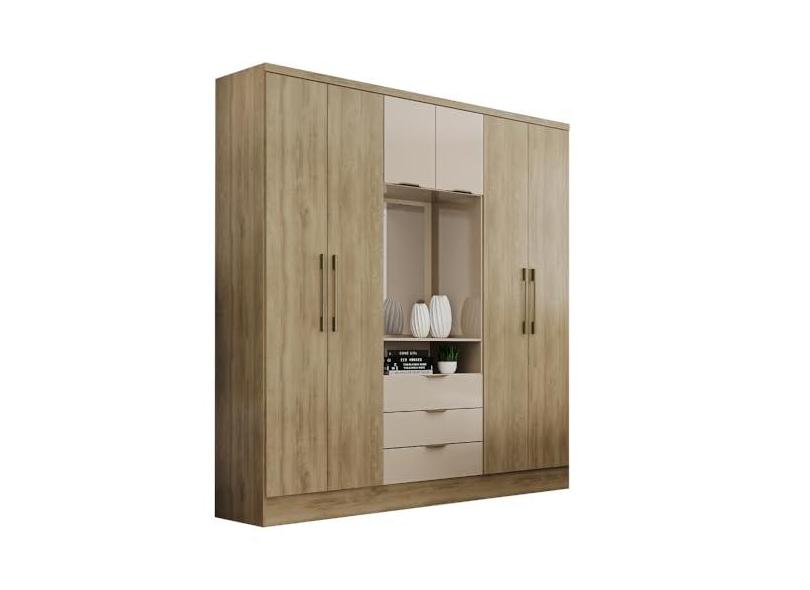 Guarda Roupa Casal 6 Portas Aspen Carraro Noce Off White