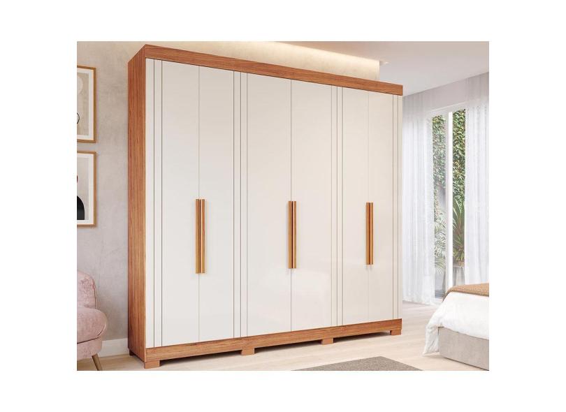 Guarda Roupa Casal 6 Portas C/ Espelho E Pés Cecilia Cinamomo/Off White - Panan