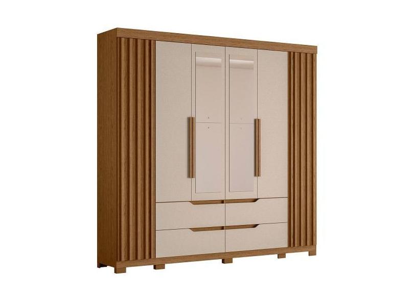 Guarda Roupa Casal 6 Portas Com Espelho 240cm Doble Jatobá/Fendi - Alb