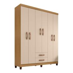 Guarda Roupa Casal 6 Portas e 2 Gavetas Monique Carvalho/Off White - Pallazio