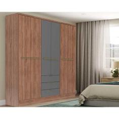 Guarda Roupa Casal 6 Portas E 3 Gavetas Troy 1151 Freijo C/ Cinza Titanio - Carraro