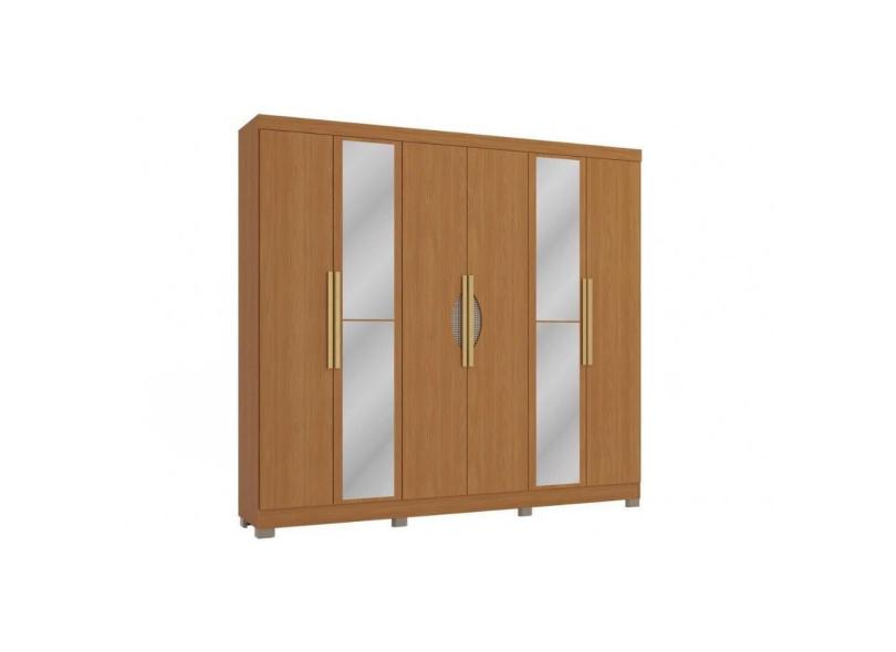 Guarda Roupa Casal 6 Portas e 4 Gavetas c/ Espelho e Pés CB01R580 Canela - Kappesberg