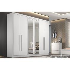 Guarda Roupa Casal 6 Portas e 4 Gavetas c/ Espelho Robust/Livorno Branco - Novo Horizonte