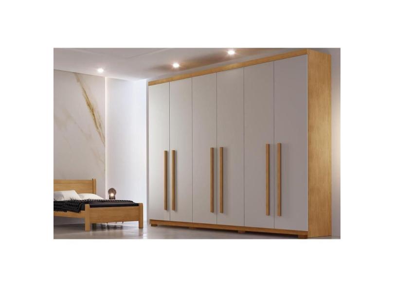 Guarda Roupa Casal 6 Portas e 4 Gavetas c/ Pés Bahia Naturale/Off White - Rufato